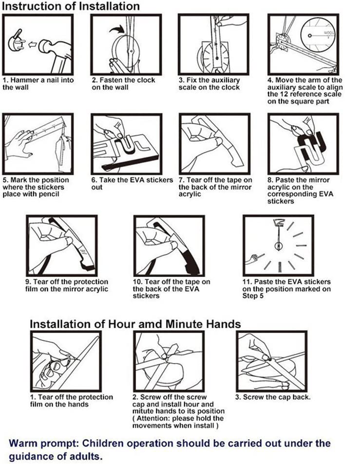 DIY Fun - The acrylic wall clock large size 27-35''/70-90cm with 3D mirror effect, easy to read. You can customize the position and size of the wall clock to your liking while enjoying the fun of installing with family and friends. With a frameless design, you can easily increase or decrease the diameter of the clock to fit different wall sizes.
