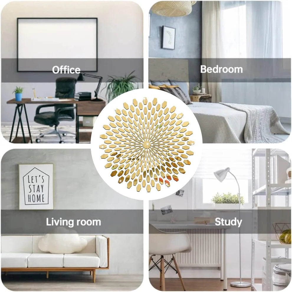 【Easy to Use and Disassemble】The Sun Flower Mirror Wall Stickers can be used on any dry, clean and smooth surface. Wipe the surface to make it clean before use. The wall mirror stickers can be fixed easily by its back-adhesive and removed without damaging your wall. The wall decoration has good adhesion. Not easy to fall off.