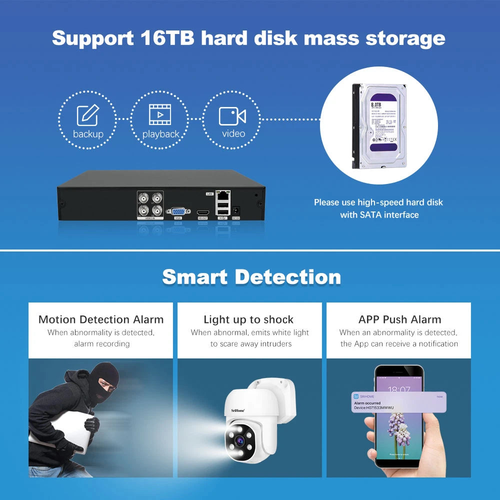 - Remote Access: View via SriHome app (iOS/Android)
