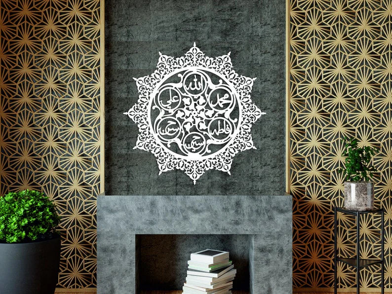 This 5 Names Acrylic Wall Decor showcases the revered names of Ali, Hassan, Hussain, and more in a sleek, modern acrylic design. A meaningful piece of Islamic art, it beautifully honors the Ahlul Bayt and adds a spiritual, elegant touch to any space. Perfect for home decor or as a thoughtful Islamic gift.