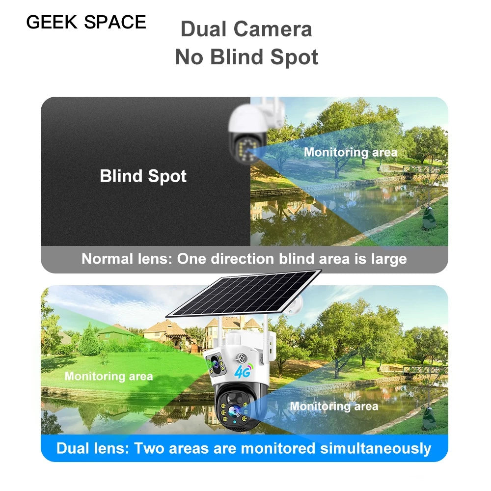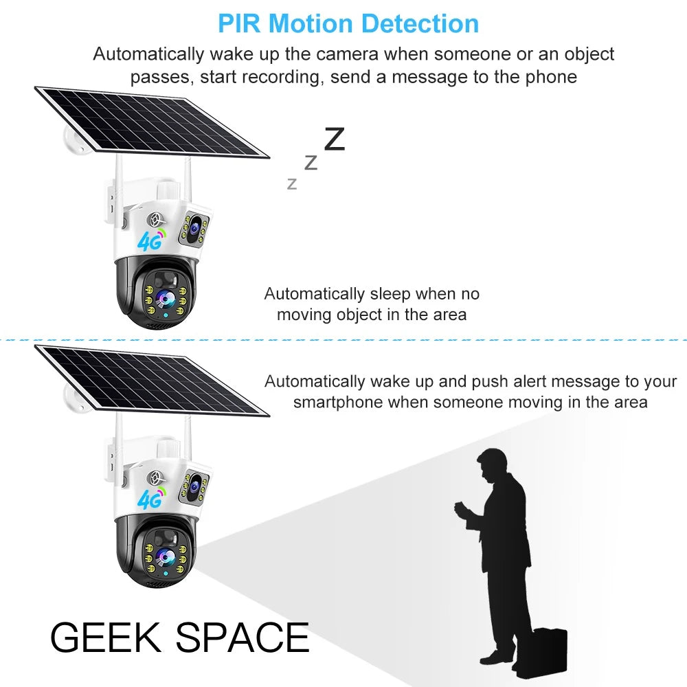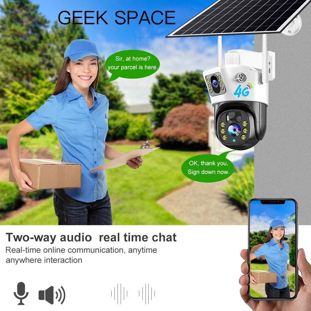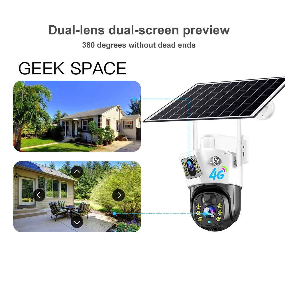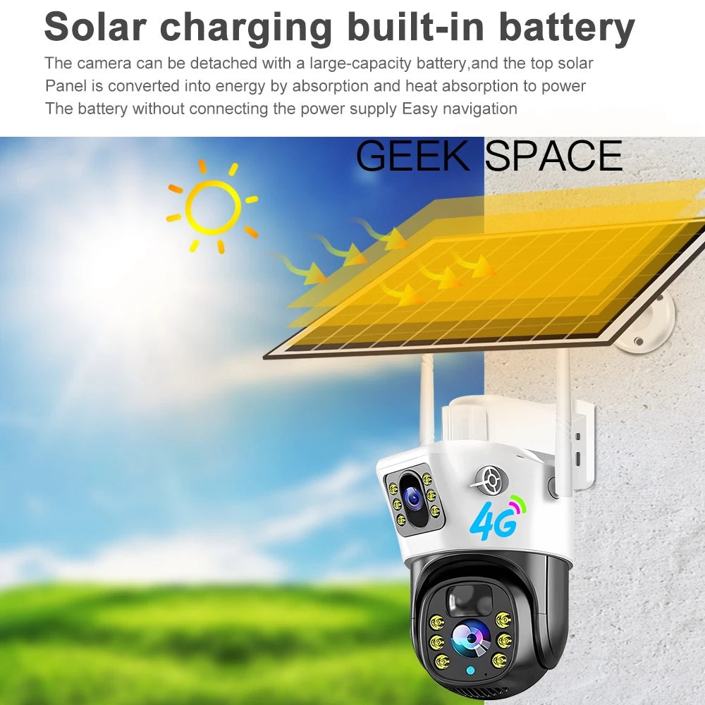 The Geek Space VCS09-4G is a solar-powered outdoor security camera with 4G LTE connectivity—ideal for remote locations without Wi-Fi. Its IP66 weatherproof design ensures year-round reliability, while full-color night vision and motion alerts provide round-the-clock protection. Easy to install and powered by a high-efficiency solar panel, this camera offers hassle-free, wireless surveillance with mobile app access.