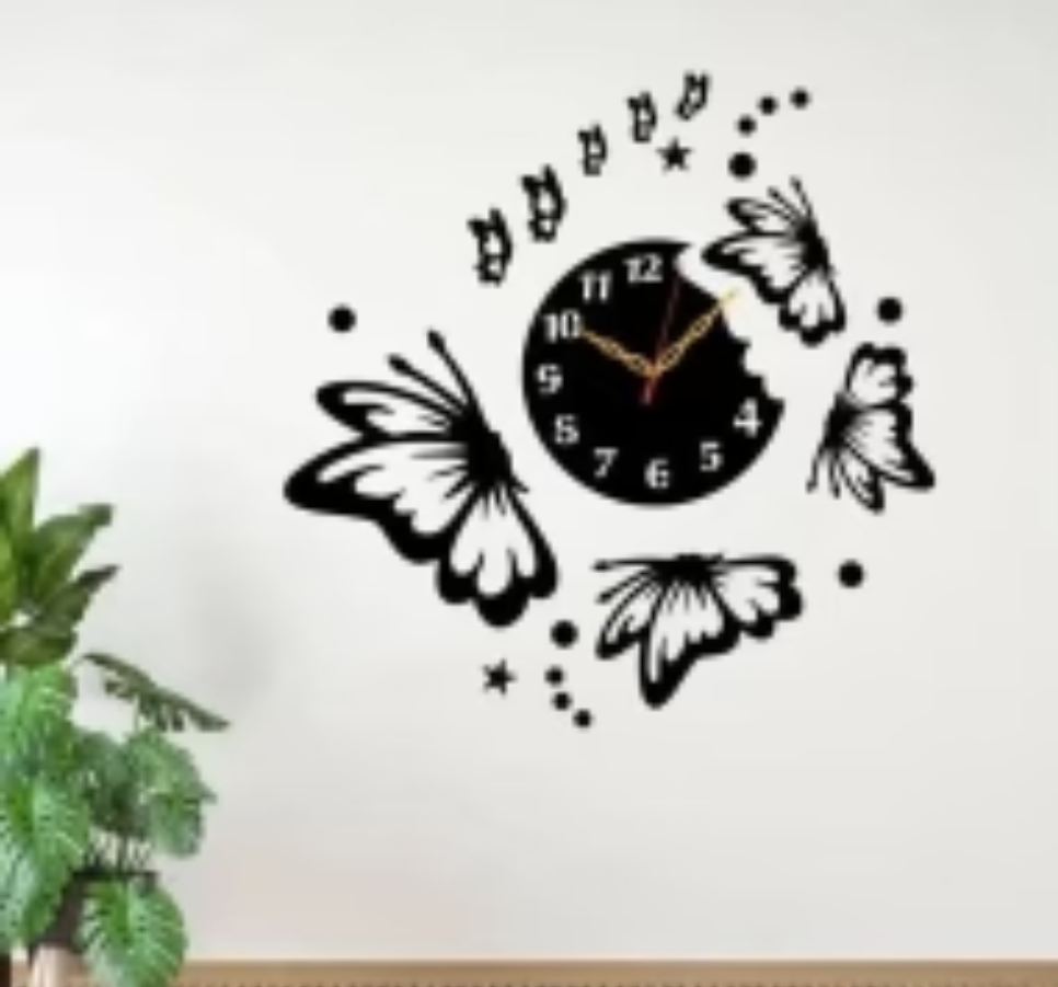 The Acrylic Butterflies Stars Clock, measuring 30×30 cm, is a captivating and modern timepiece designed to elevate any space. Crafted from high-quality 3mm acrylic with a shiny and glossy finish, this clock features a unique design incorporating butterflies and stars. The intricate details and vibrant colors add a touch of elegance and charm to your living room, study, dining room, or bedroom. With silent movement technology, this clock not only serves as a functional timekeeping device but also enhances the aesthetic appeal of your decor. Backed by a 6-month machine warranty, this clock combines artistic flair with reliable performance.