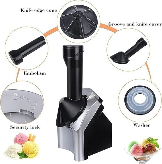 Dessert Frozen Black & Gray Ice Cream Treat Maker – Make Healthy Soft Serve from Frozen Fruit.