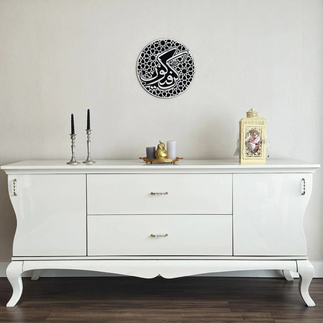 This stunning piece of Islamic calligraphy bears the powerful verse 'Kun Faya Kun' from the Quran, a testament to Allah's ability to create with a mere command. Elevate your Islamic home decor with this masterpiece, perfect for your Quran wall art, a meaningful Muslim gift. Enhance your Ramadan decorations and celebrate Eid Mubarak with a touch of elegance that resonates with faith and tradition. This set is also an ideal Ramadan decor for your walls.